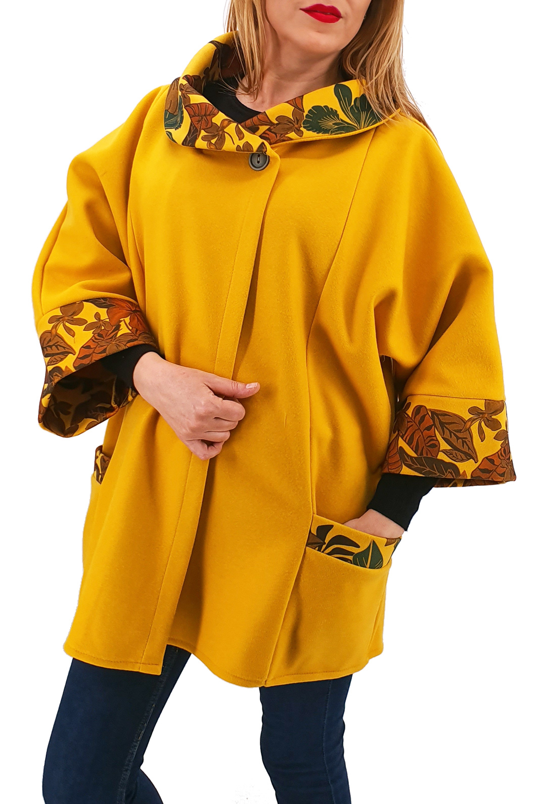 Cardigan elegant de putat in orice moment al zilei model impimat. Marimi: Marime universala Circumferinta bust: 120 cm; Lungime: 86cm Culoare: mustar si verde negru Cardigan fara elastic in talie si maneca lunga buzunare si gluga. Cardigan vaporoas si lejer la purtat. Modelul din imagine are 1.70 m 60kg 90cm circumferinta bustului.