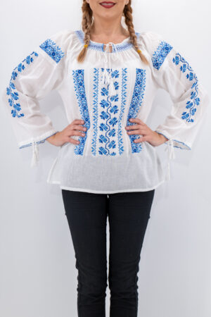 Culoare: alb cu broderie albastru, galben si negru