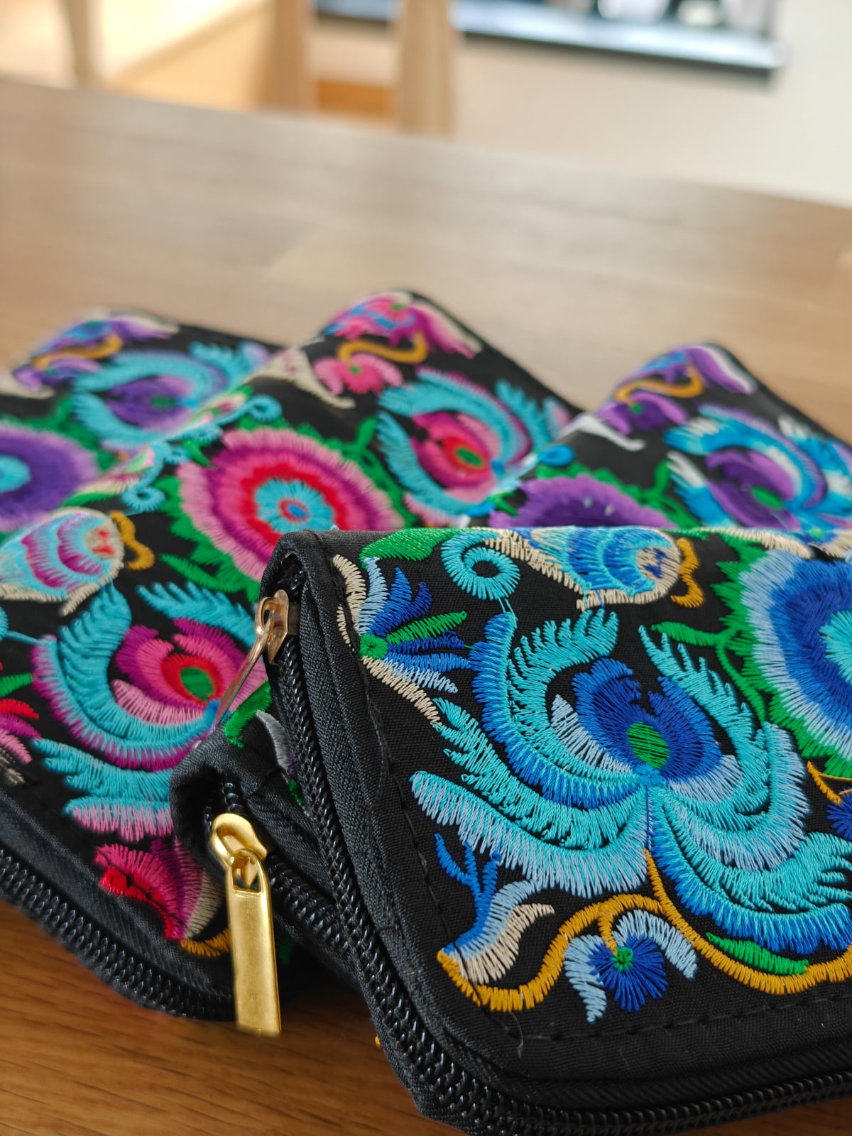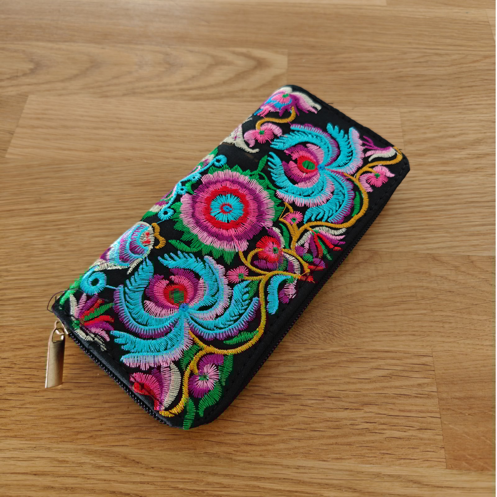 Detalii produs: inchidere cu fermoar portofel brodat Culoare: multicor Material: material textil cu broderie la exterior Dimensiuni: 19cm 10cm,