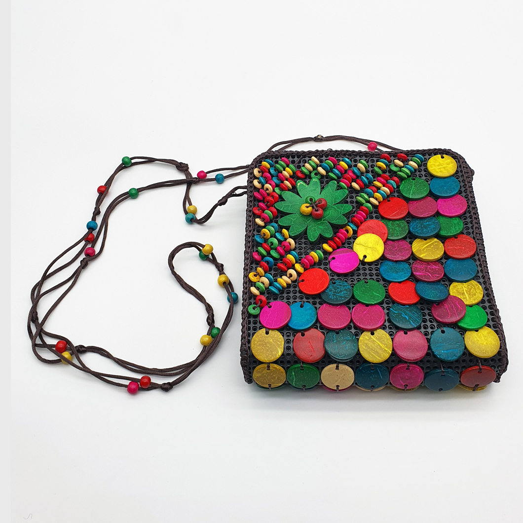 Detalii produs: inchidere cu fermoar si capsa magnetica strasuri si paiete cusute manual. Culoare: multicolor Material: material textil la exterior interior Dimensiuni: 28cm 19cm, lant 63 cm