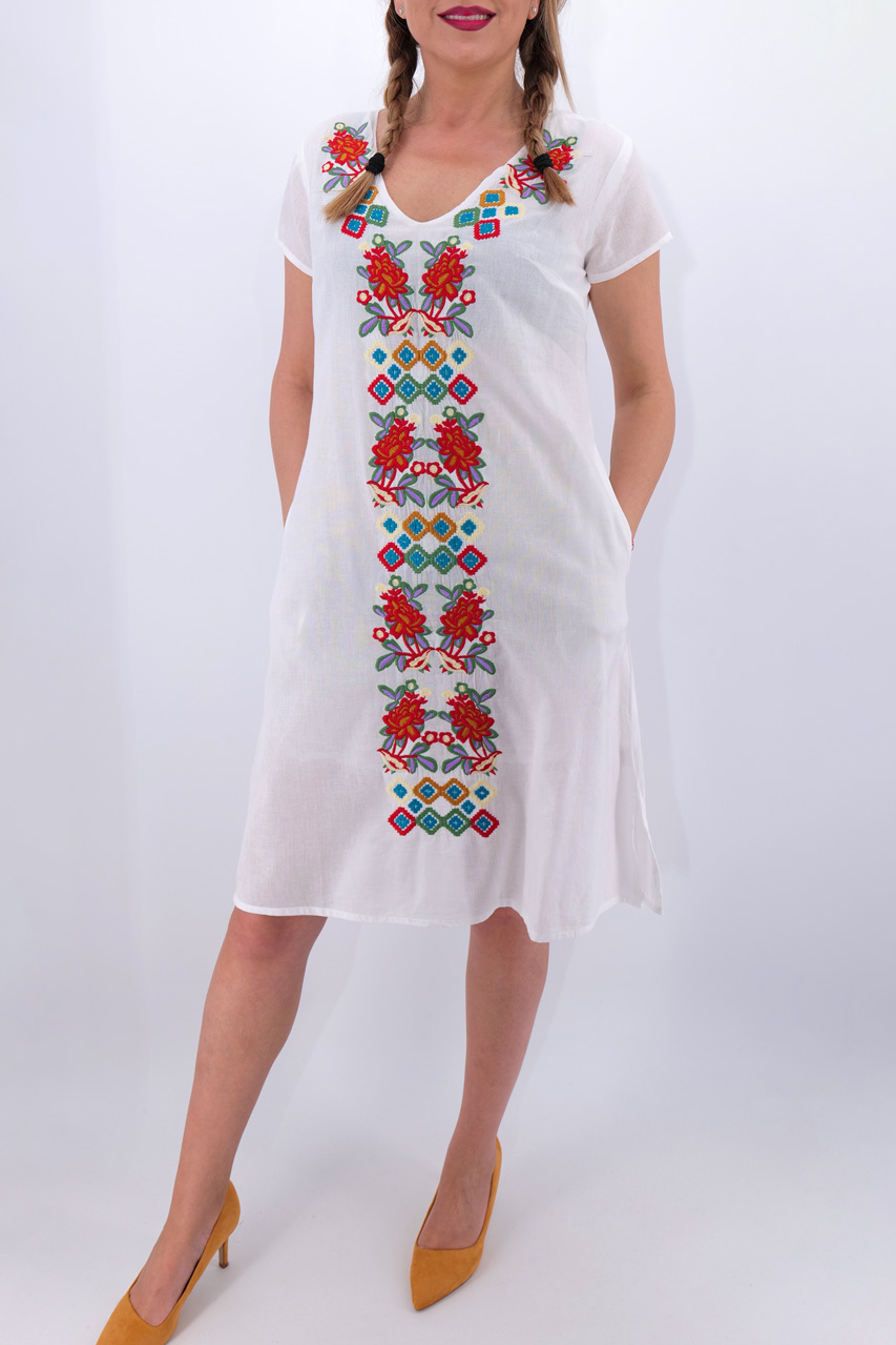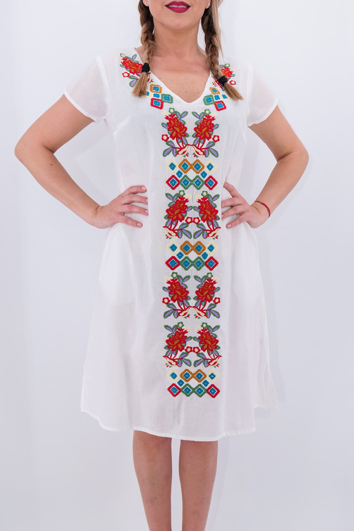 Culoare: alb cu broderie multicolora.