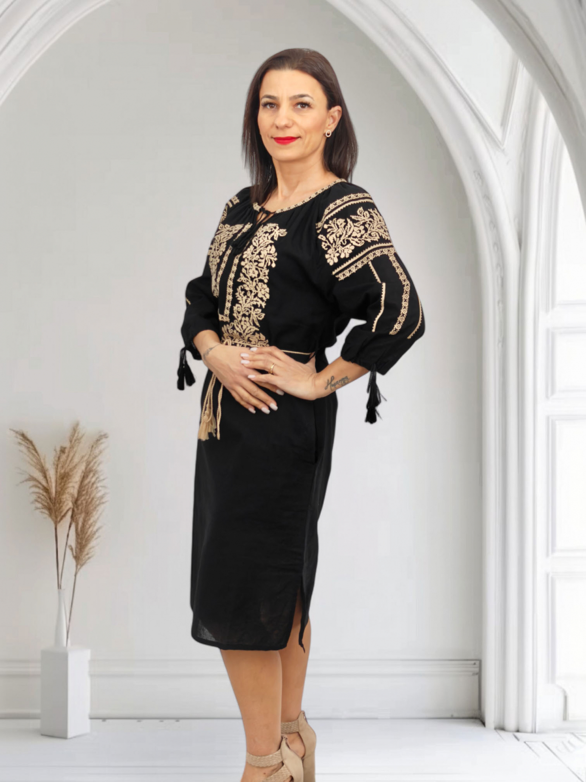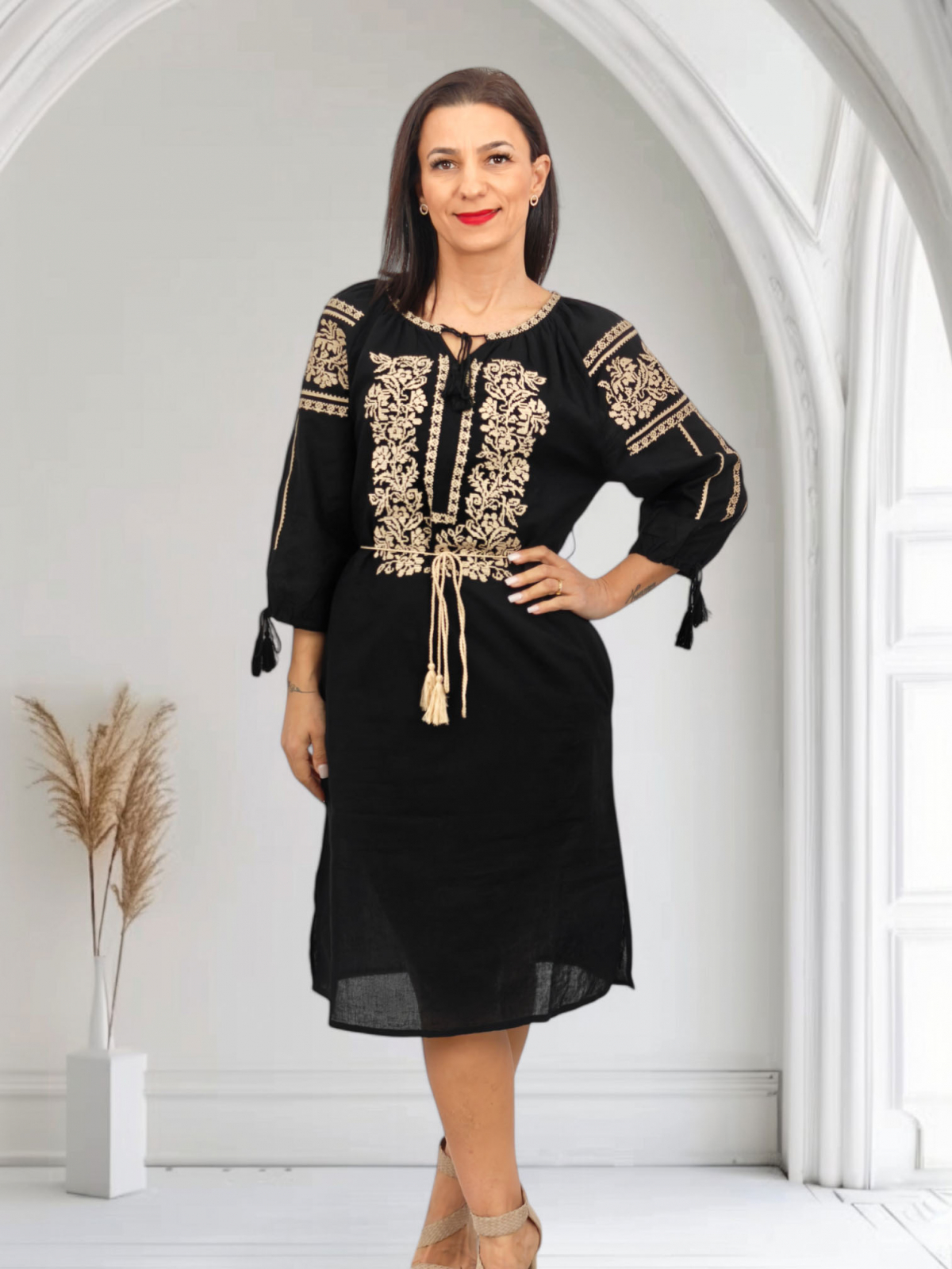Culoare: negru cu broderie crem
