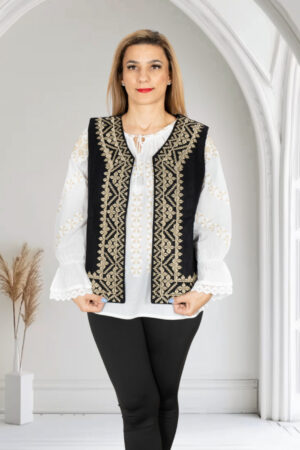 Modelul din imagine are 160cm, 55kg, 90cm in bust si poarta masura S.